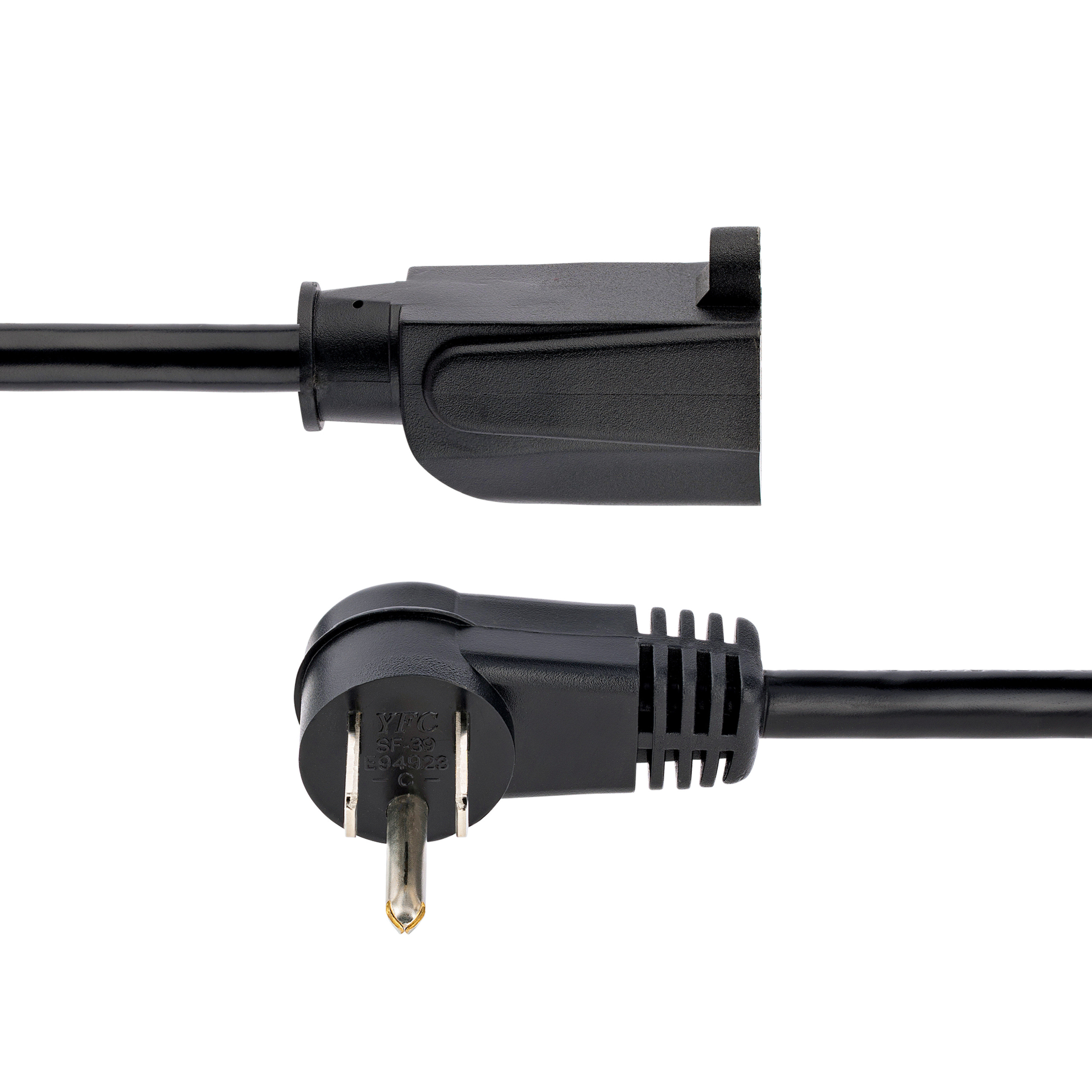 Enhance your workspace with the StarTech.com PAC101R1 power extension cord, designed to maximize outlet space and provide convenience. This 1ft (0.3m) extension cord features a right-angled NEMA 5-15 plug that sits flat against the wall, allowing you to plug in devices without obstructing furniture. Ideal for use behind cabinets or desks, it helps prevent strain on plugs and protects them from damage.