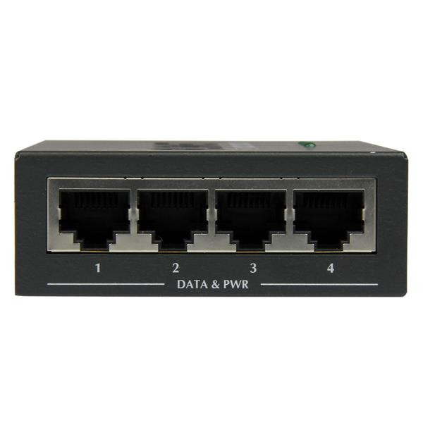 The StarTech.com POEINJ4G is a Gigabit midspan PoE+ injector designed to enhance your network capabilities without the need for costly upgrades. This compact and versatile device supplies up to 30 Watts of power to each of its four ports, allowing you to easily power high-demand PoE-compliant devices such as IP cameras, wireless access points, and IP phones using standard Ethernet cables.