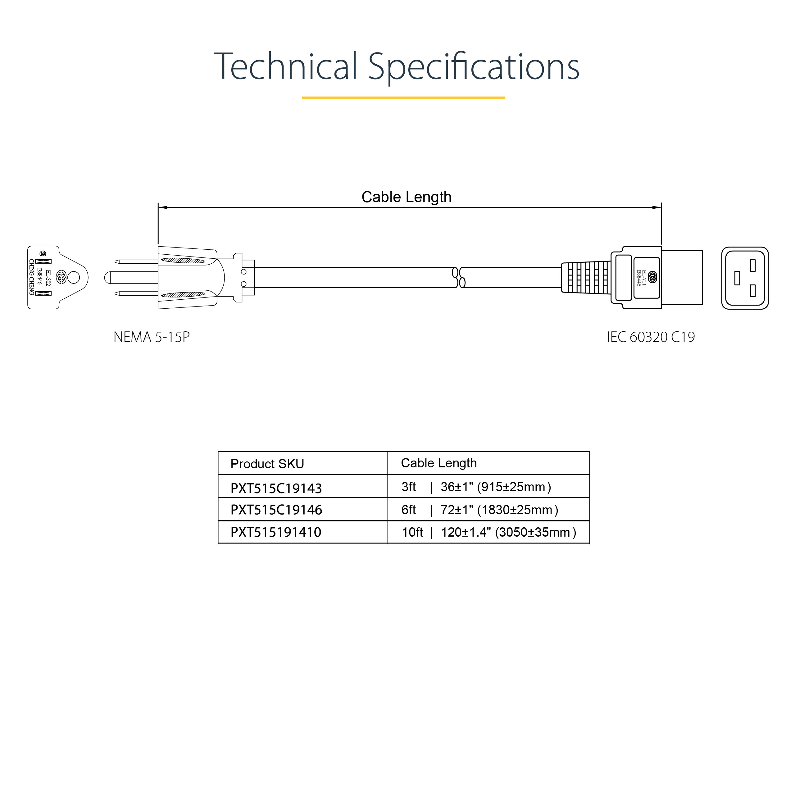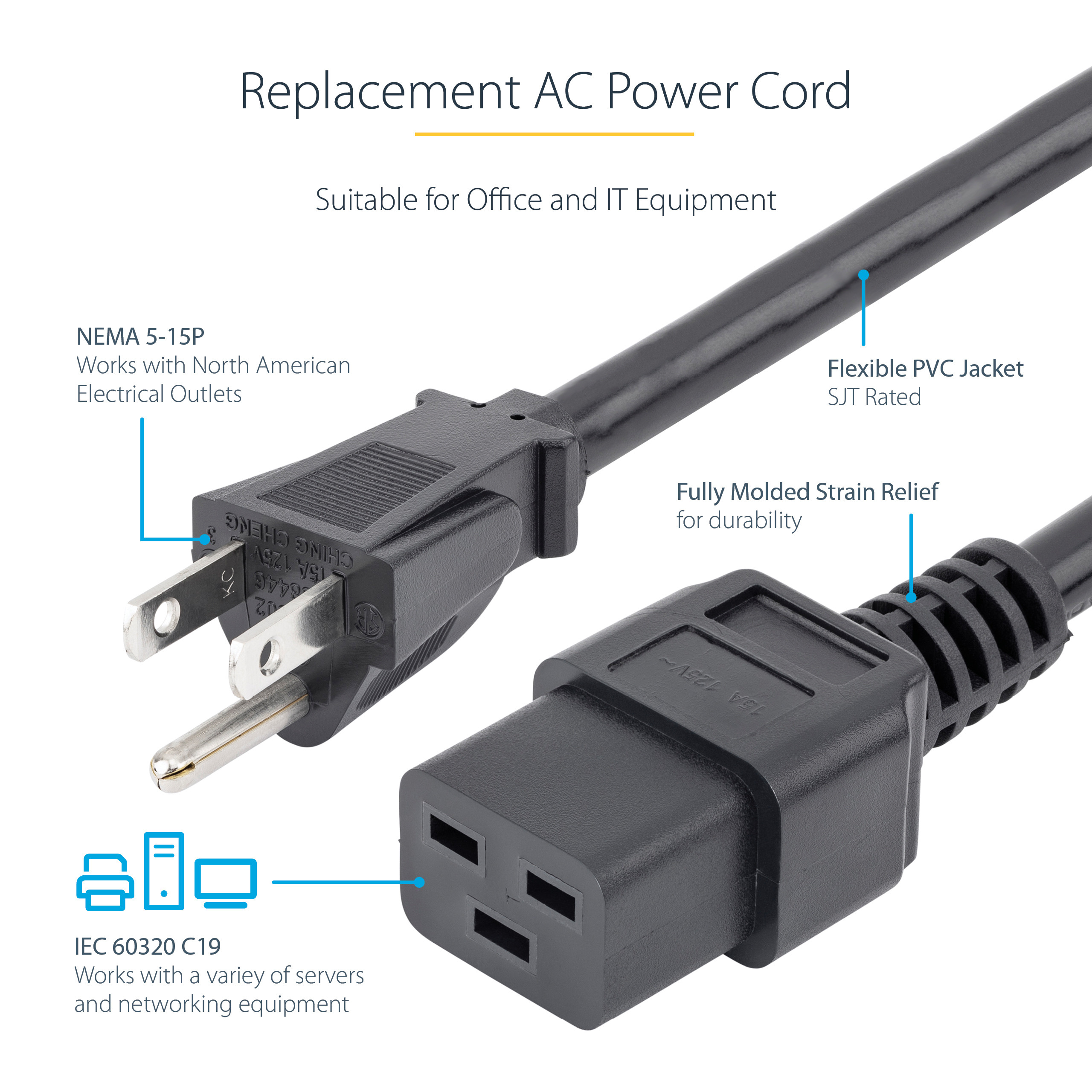 Enhance your connectivity with the StarTech.com PXT515C19143 power cable, a 3ft (1m) heavy-duty solution designed for high-performance applications. This NEMA 5-15P to C19 cable features: