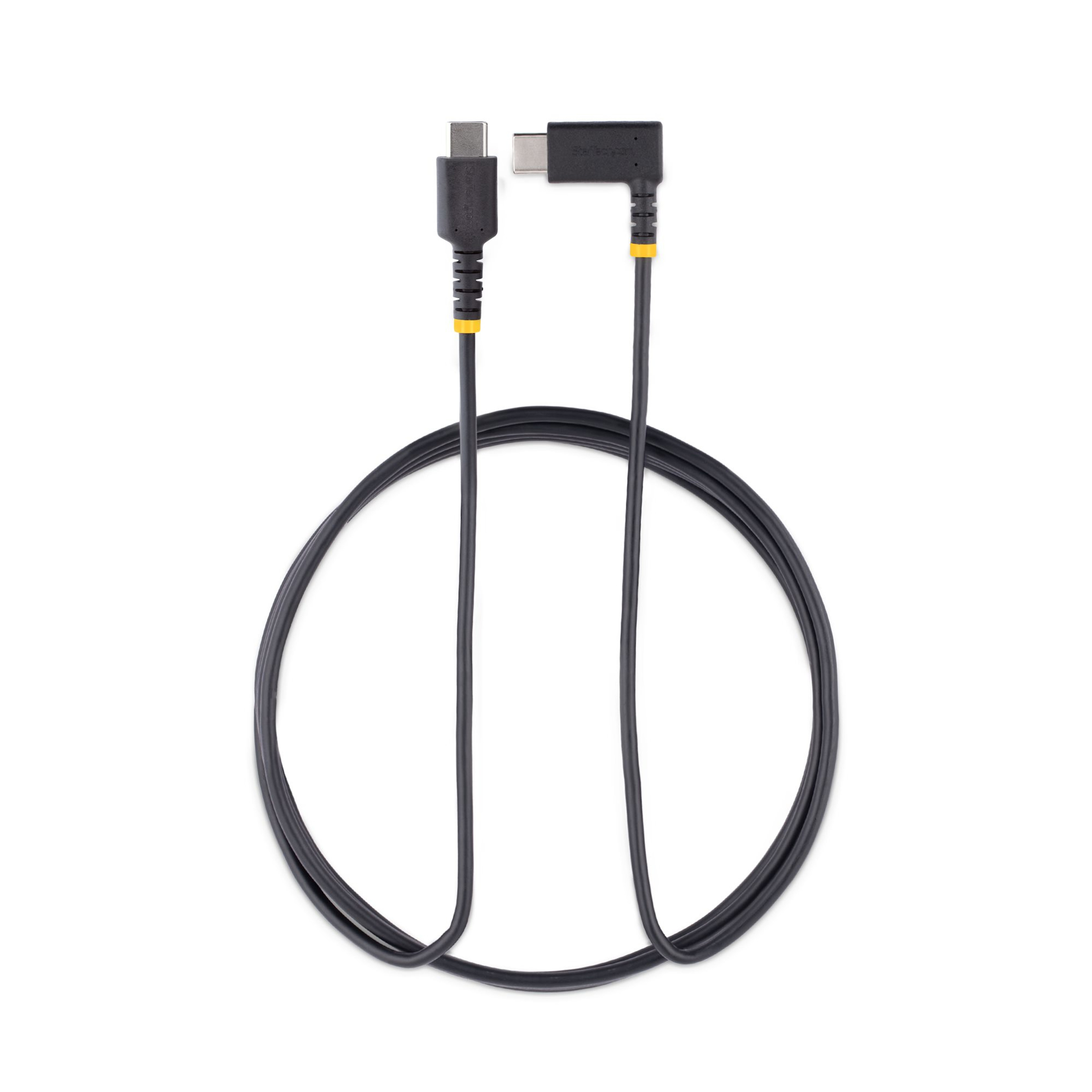 Connect and charge your USB Type-C devices effortlessly with the StarTech.com R2CCR-2M-USB-CABLE. This rugged 6ft (2m) USB-C right angle cable is designed for convenience and durability, making it ideal for tight spaces where a straight cable may not fit.