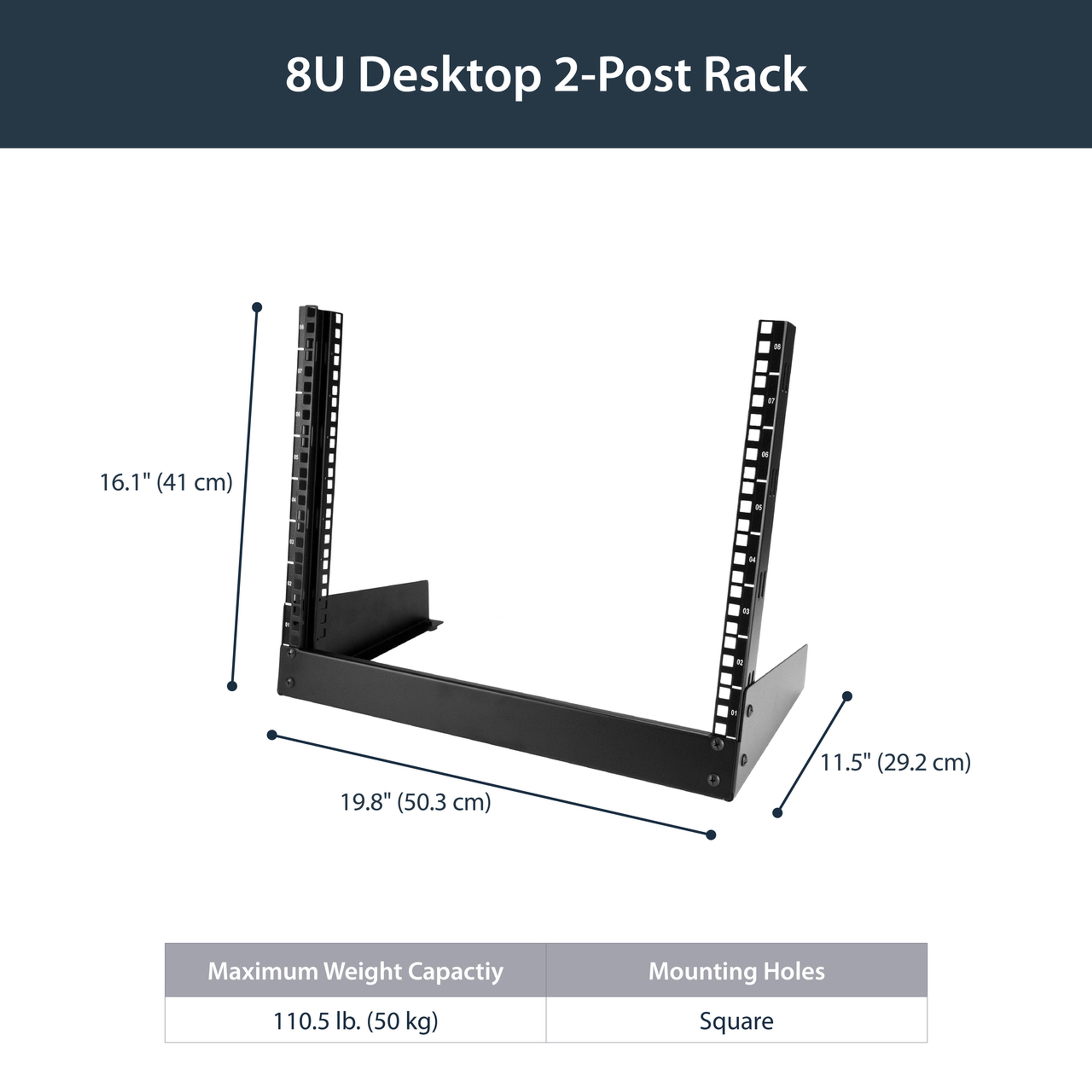 This 2-post desktop rack provides 8U of storage space for mounting smaller A/V and IT equipment.