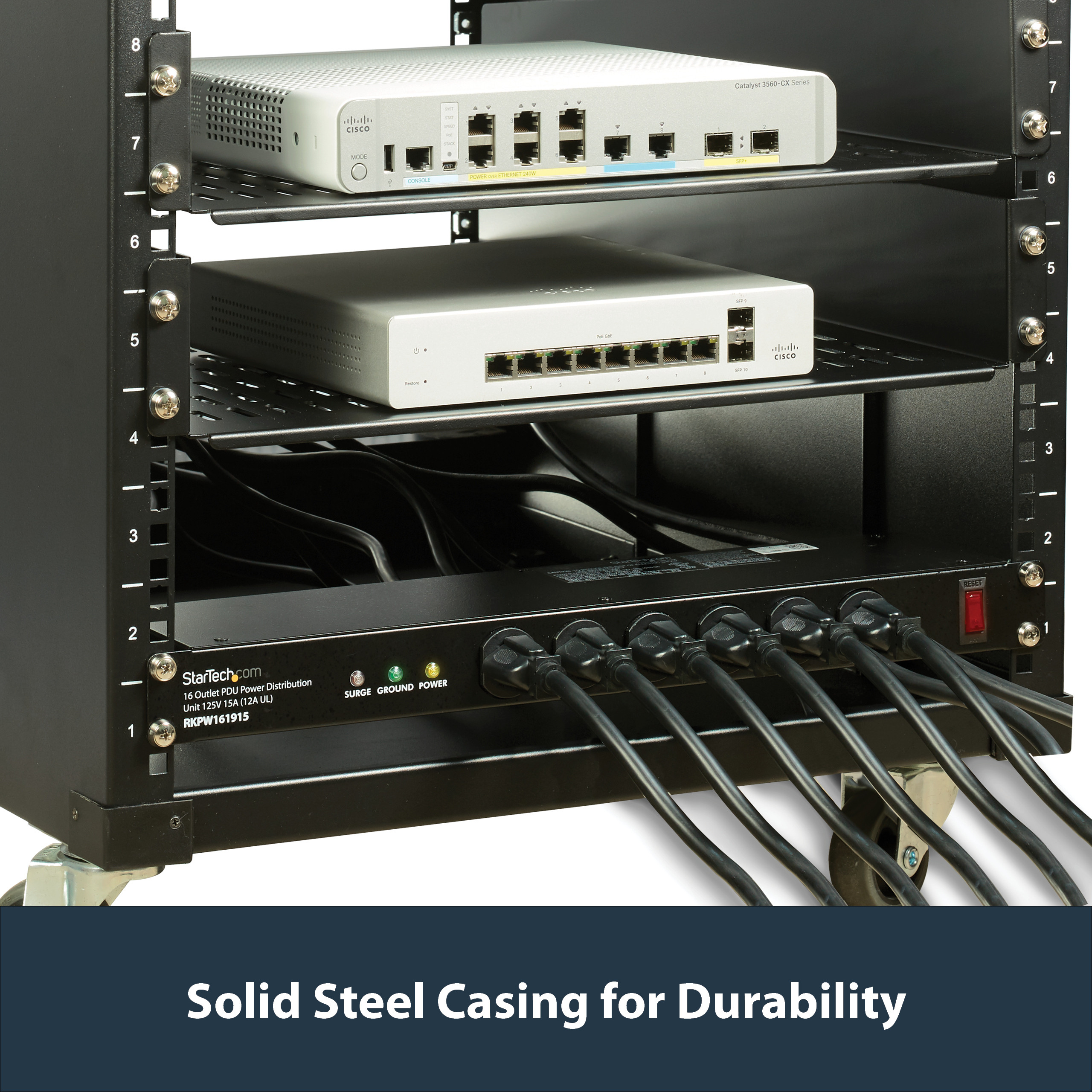 Enhance your server rack with the StarTech.com RKPW161915 power distribution unit, designed to provide a reliable and efficient power solution. This 16-outlet (120V 15A) PDU is perfect for organizing and expanding your power needs.