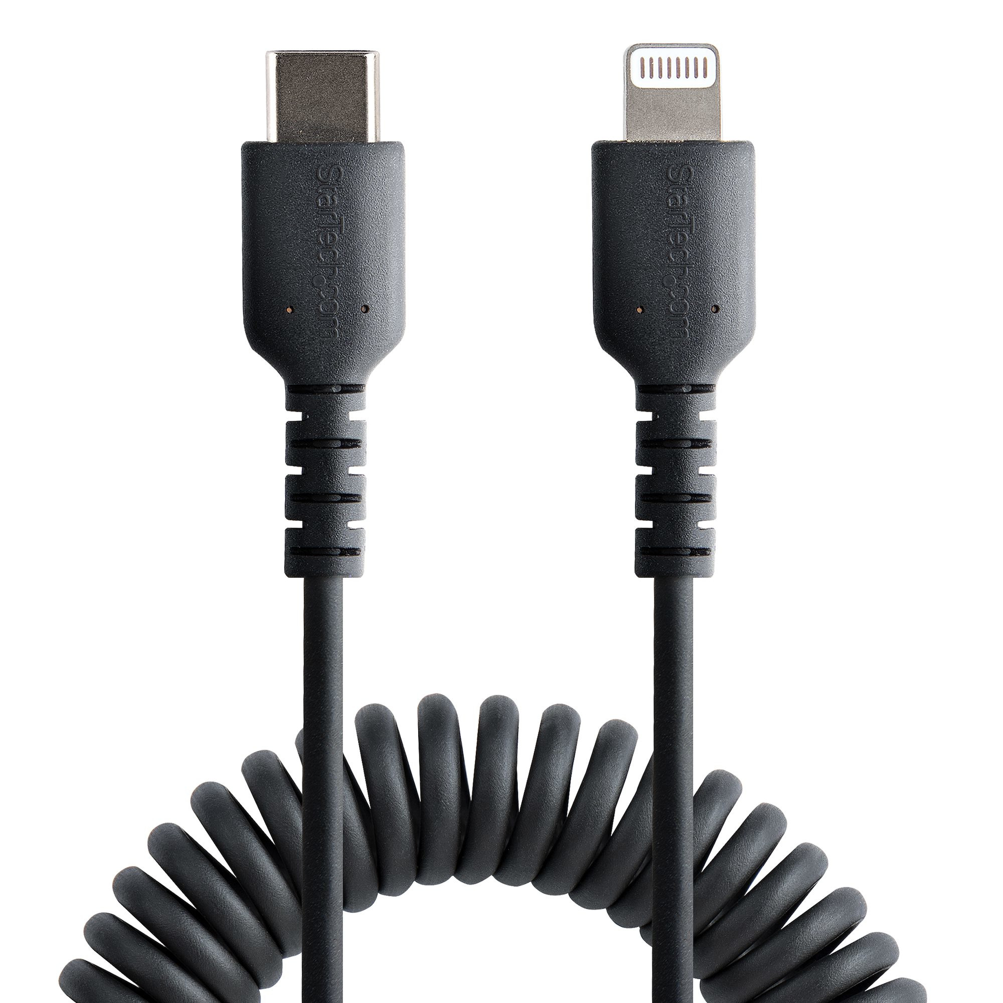Experience the ultimate convenience with the StarTech.com RUSB2CLT50CMBC Lightning to USB-C cable. This MFi Certified cable is designed to meet the daily demands of charging and syncing your mobile devices. With a coiled design that stretches up to 20 inches (50 cm) and contracts to 12.5 inches (32 cm), it prevents tangling and is easy to store in your vehicle's console or glove compartment.