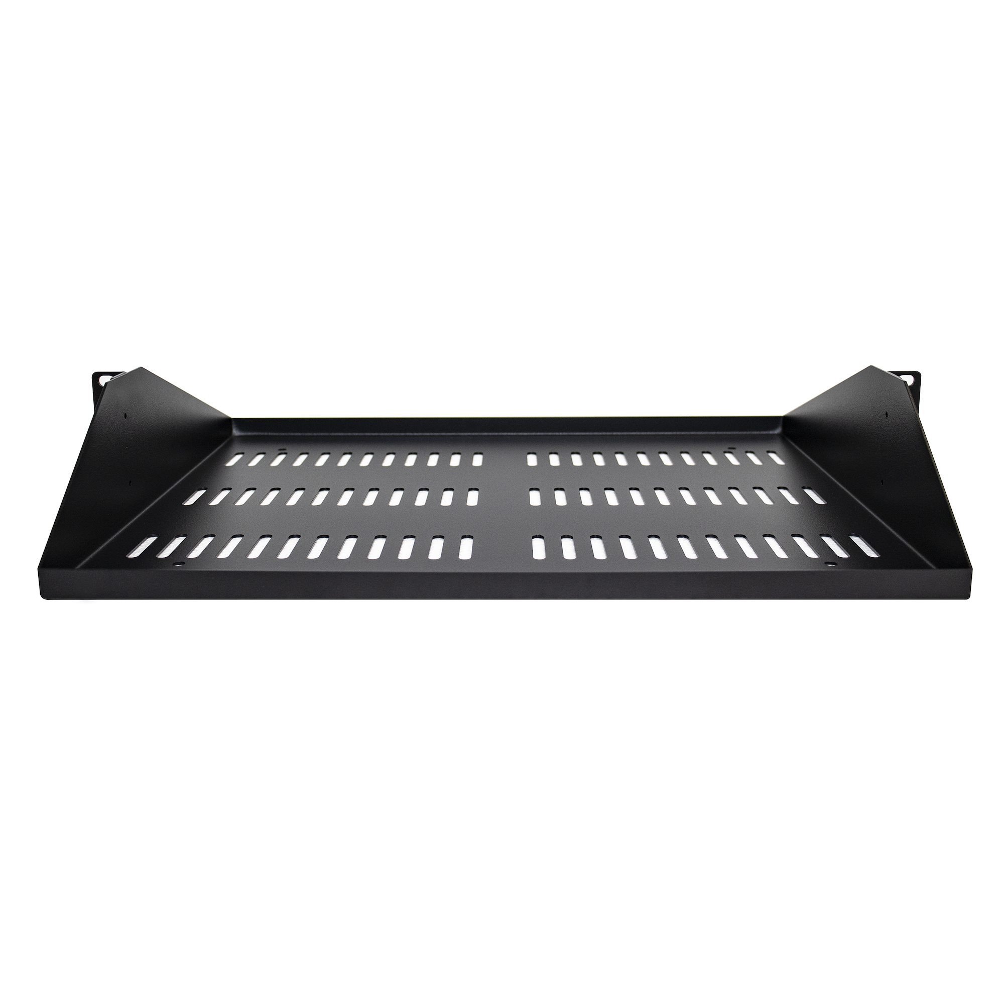 Add a sturdy, 2U server rack shelf to any 2-post rack with the SHELF-2U-14-CENTER-V. This shelf is designed to fit EIA-310 compliant 19-inch racks and accommodates an internal depth of 14 inches (35.6 cm), making it ideal for your data, IT, networking, or other non-rack mountable equipment.