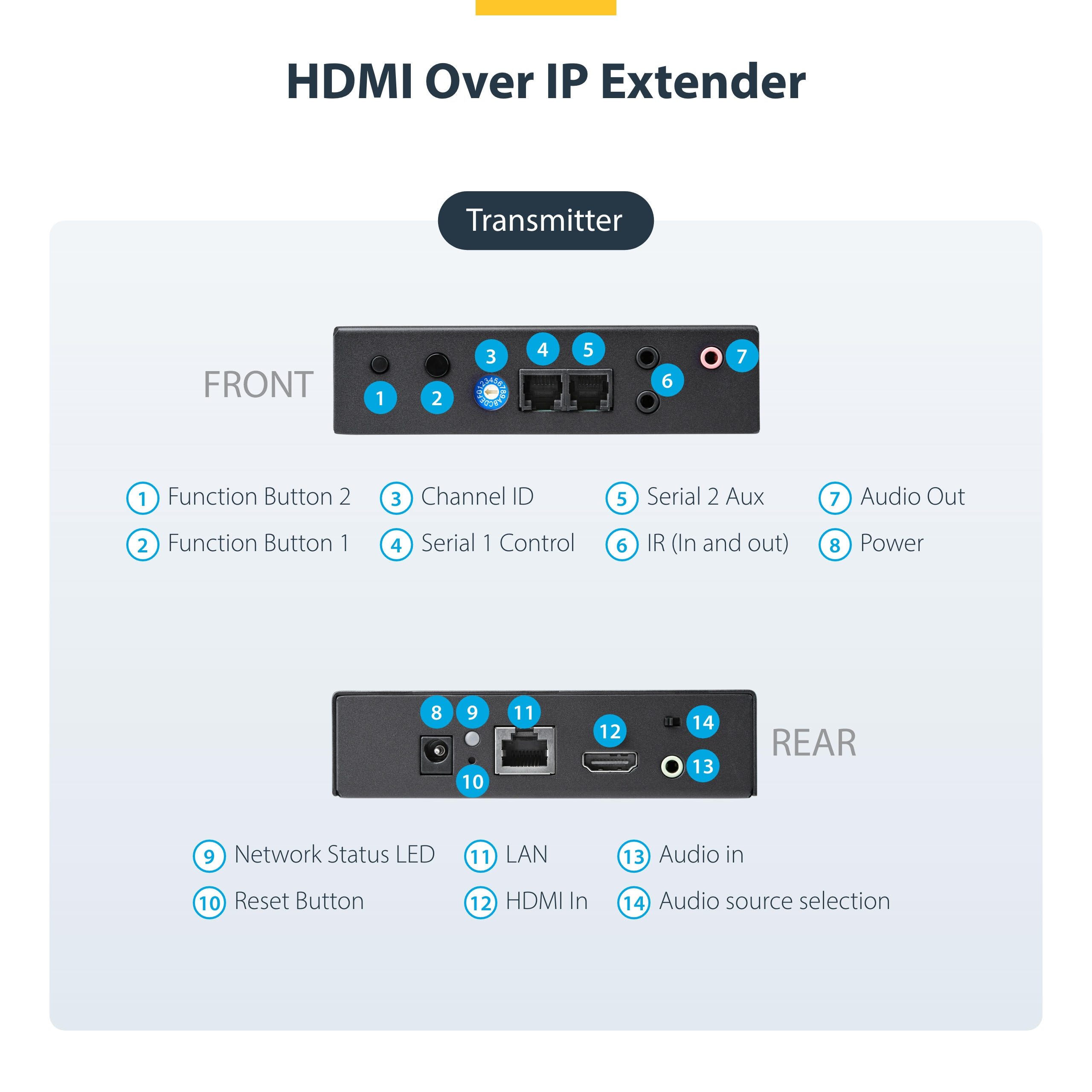 The StarTech.com ST12MHDLAN2K is a powerful HDMI over IP extender kit designed to distribute video signals over your local area network (LAN) using Cat5e or Cat6 cabling. This versatile kit allows you to connect multiple sources to multiple displays, making it ideal for creating stunning video walls or managing digital signage.