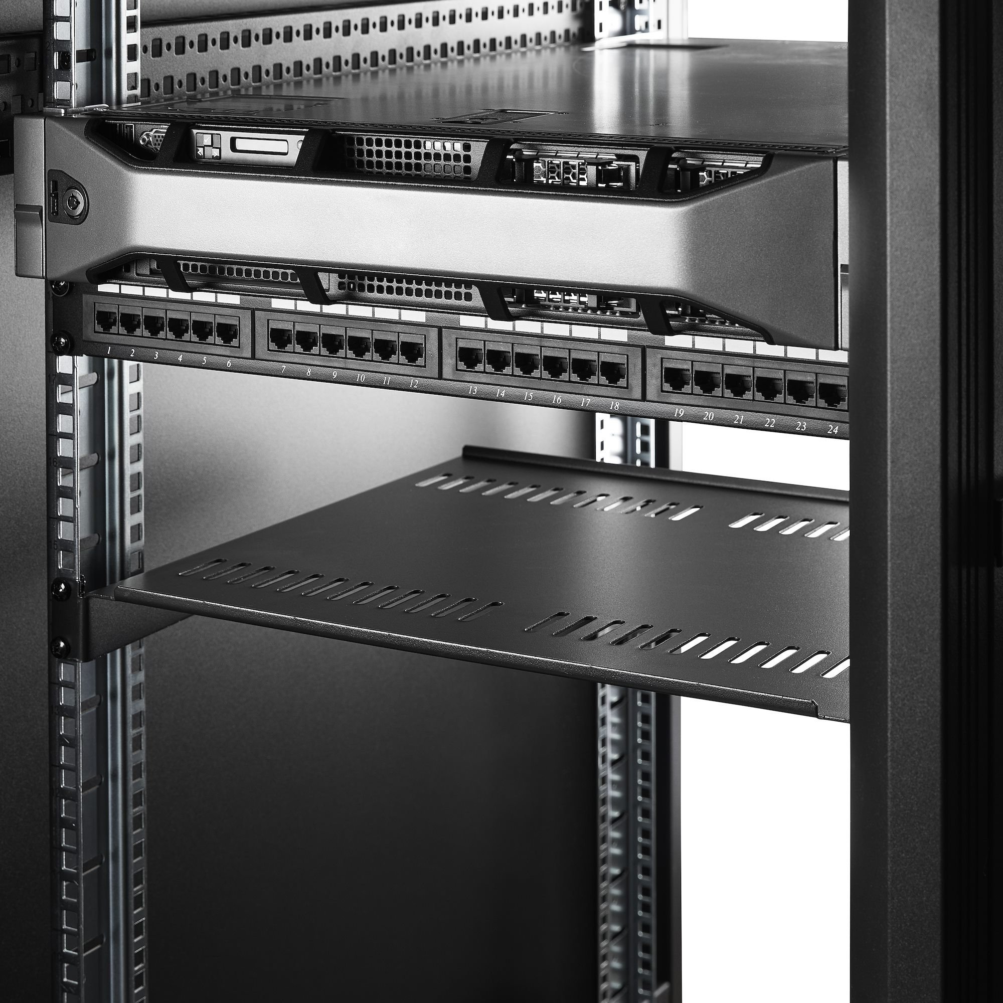 Add a sturdy vented shelf into a 19-inch server rack or cabinet with this 2-pack of 1U rack shelves. Designed for EIA-310-compliant racks, these shelves improve airflow to mission-critical equipment, ensuring optimal performance.