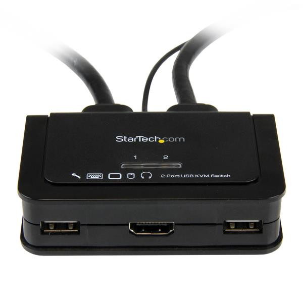 Effortlessly control two HDMI, USB-equipped PCs with a single monitor, keyboard, mouse, and audio peripheral set using the StarTech.com SV211HDUA KVM Switch. This compact and efficient device is designed to save desk space while providing seamless switching between systems.