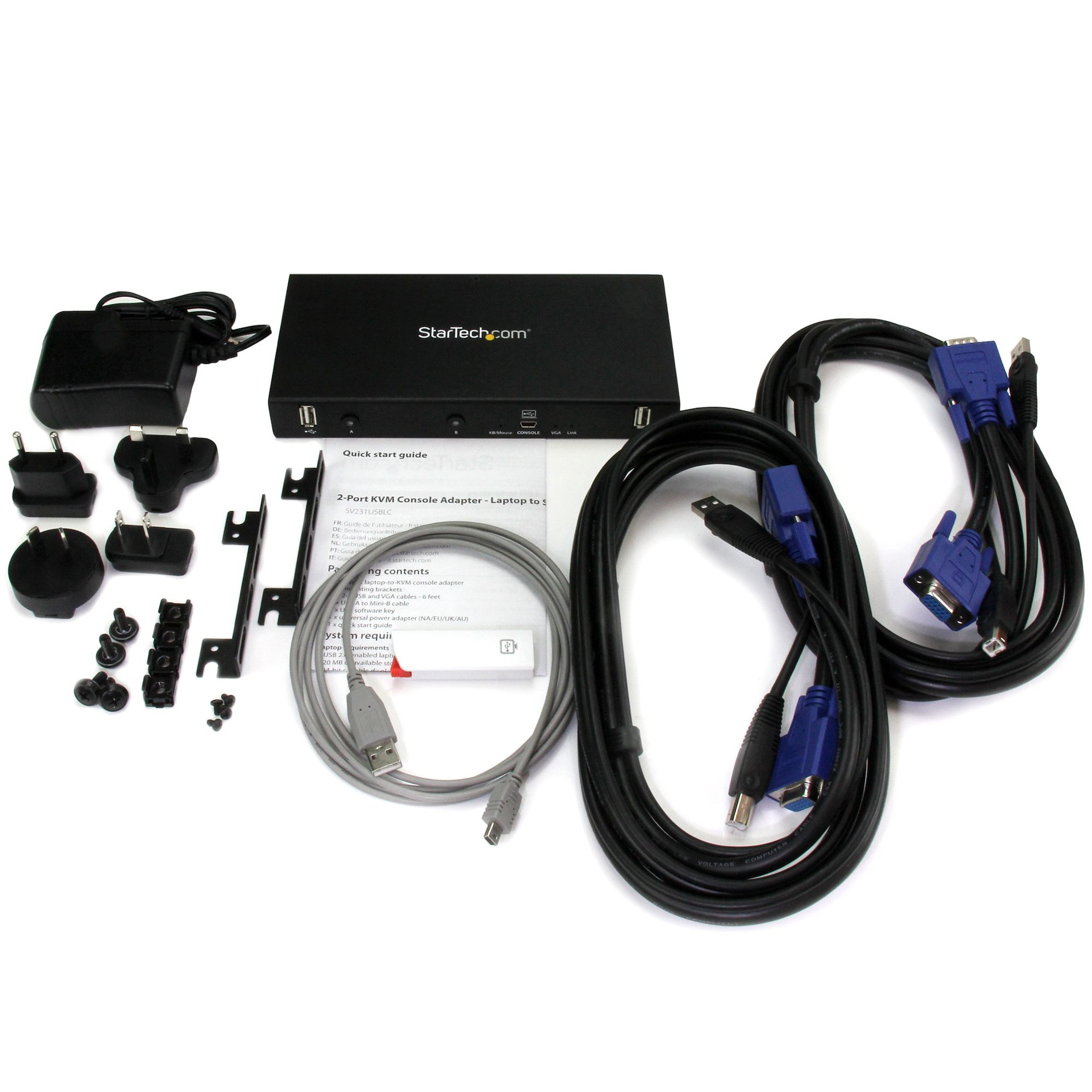Instantly turn your laptop into a 2-port KVM console with the StarTech.com SV231USBLC rack-mounted crash cart adapter. This innovative solution provides KVM control of your servers directly from your laptop, making it ideal for routine diagnostics, maintenance, and updates in small-scale server applications.