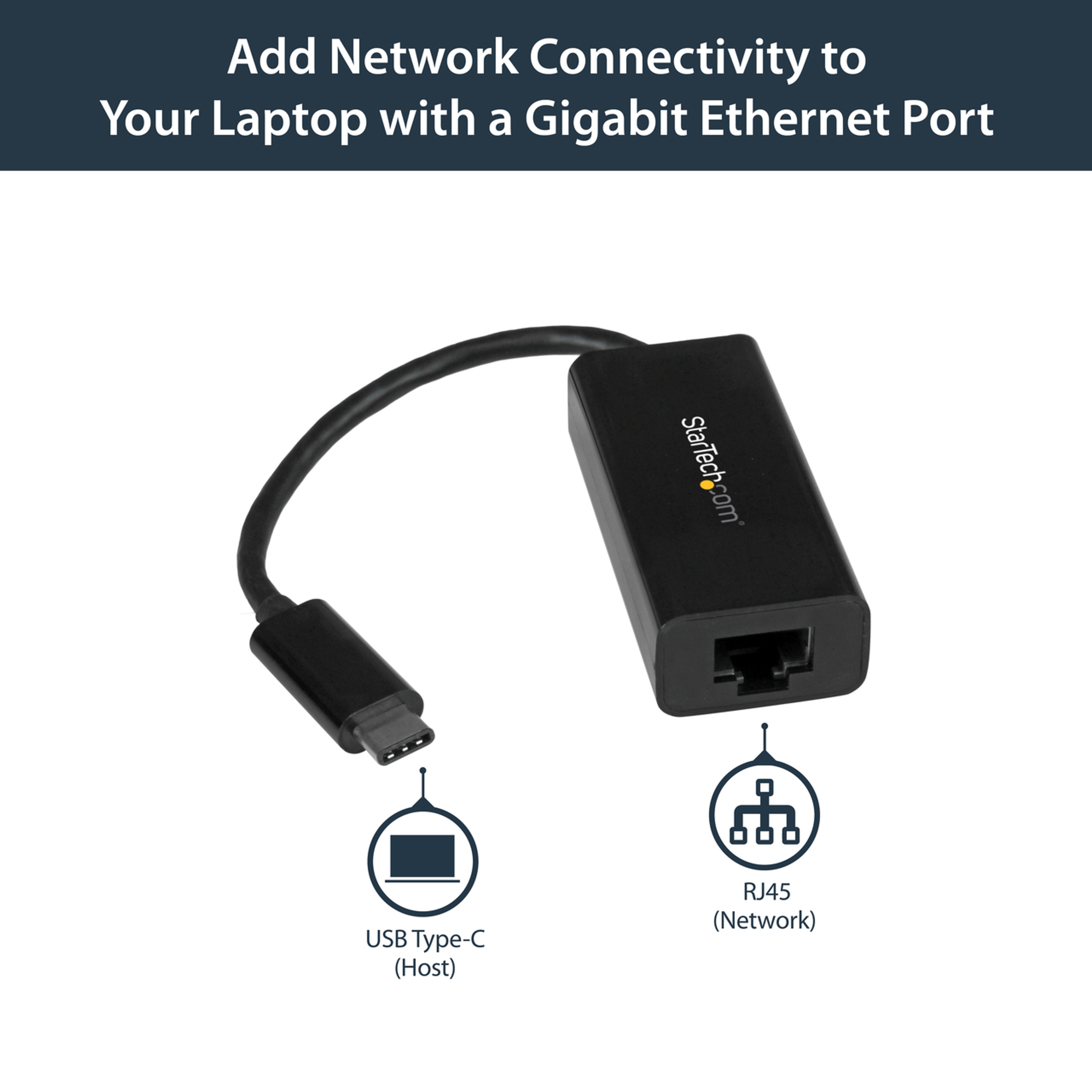 Enhance your connectivity with the StarTech.com US1GC30B USB-C to RJ45 network adapter. This compact and lightweight device allows you to add an Ethernet port to your computer, supporting speeds of up to Gigabit on 10/100/1000 Mbps networks. Ideal for reliable wired connections or as an alternative to WiFi, this adapter is perfect for users on the go.