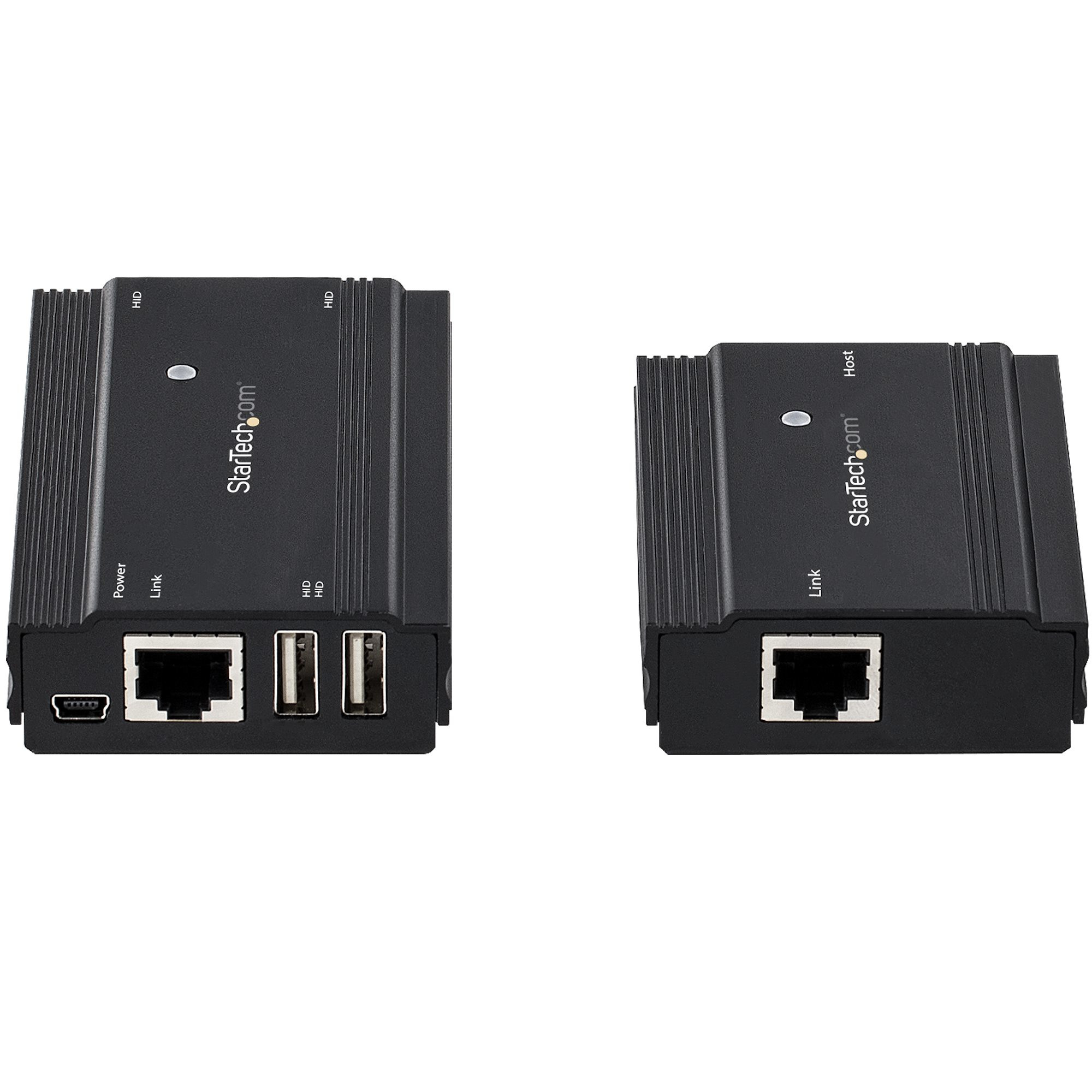 Enhance your connectivity with the StarTech.com USB2004EXT100 Console Extender, designed to extend up to four USB 2.0 devices over distances of up to 330 feet (100 meters) using standard Cat5e/Cat6/Cat7 Ethernet cabling. This rugged USB extender is perfect for commercial applications, providing reliable performance with a data bandwidth of up to 480Mbps.