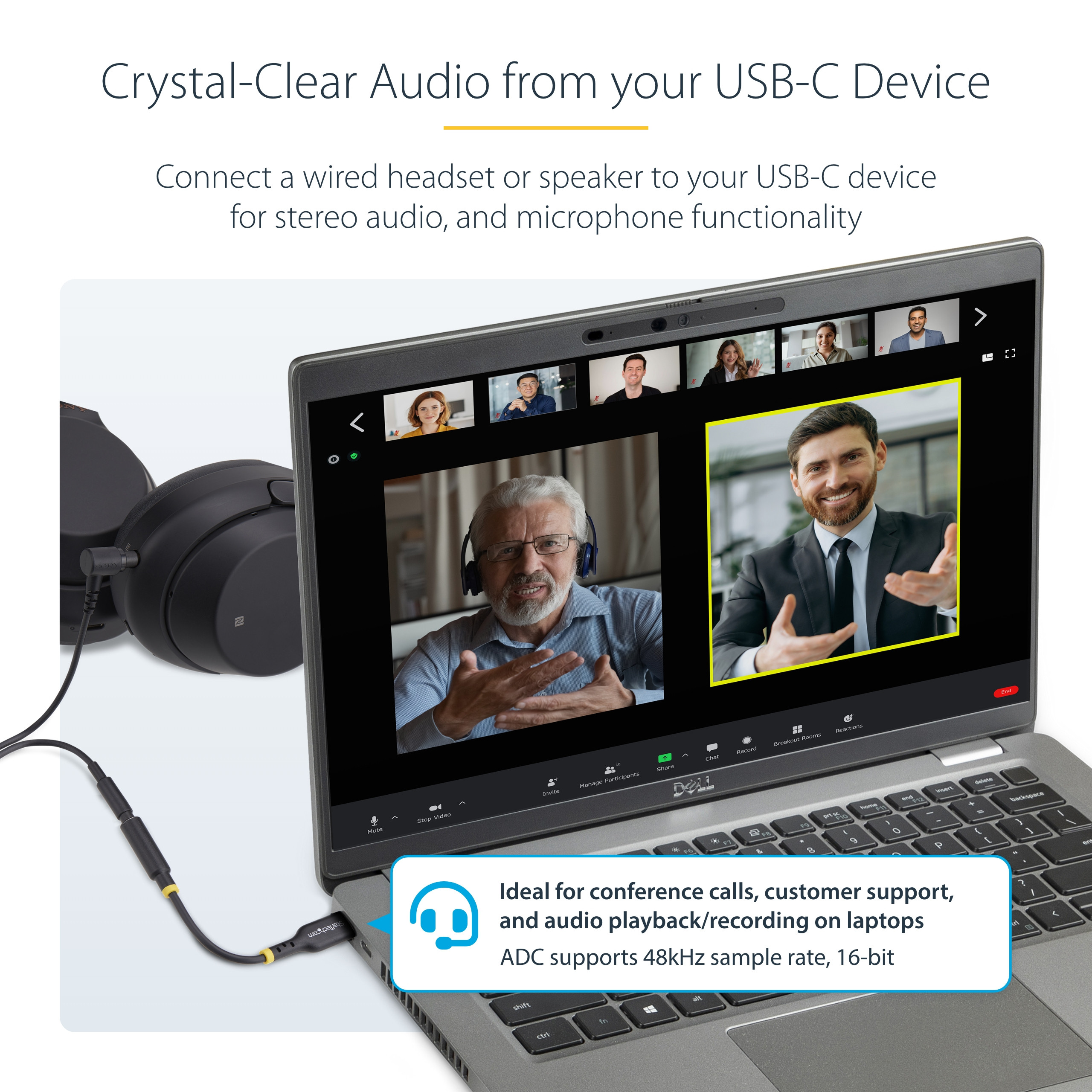 Enhance your audio experience with the StarTech.com USB-C to 3.5mm Audio Adapter. This versatile adapter allows you to connect wired headphones or speakers to any USB Type-C enabled device, providing both stereo sound and microphone functionality through its TRRS jack.