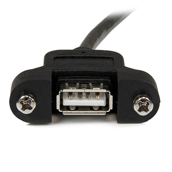 Enhance your connectivity options with the StarTech.com USBPNLAFAM1 Panel Mount USB Cable. This 1ft USB 2.0 cable provides a secure and easily accessible USB-A port, perfect for podiums, kiosks, and other setups requiring additional USB access.
