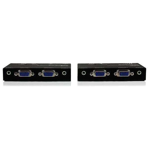 The Converge A/V VGA video and audio over Cat5 video extender is an ideal solution for connecting up to four monitors (two local and two remote) to a single PC. This versatile device transmits video signals over standard Category 5e UTP cable using RJ45 connectors, supporting distances of up to 150 meters (500 feet). Perfect for digital signage applications in airports, bus depots, retail spaces, and large buildings, the ST122UTPA is an out-of-the-box solution that includes both the local transmitter and remote receiver.