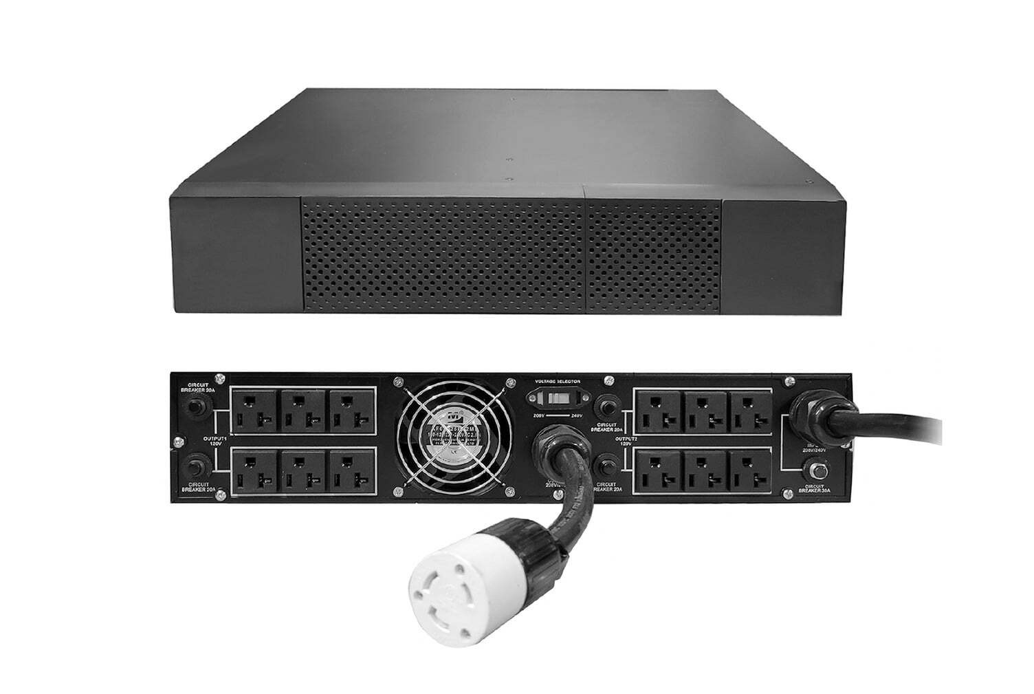 Step Down Isolation Transformer 10kVA; 3U; Single-Phase; 208V to 240/120V or 240V to 240/120V; Input Terminal Block; Output Terminal Block + (2) L14-30R and (8) 5–15/20R Outlets; 3 Year Warranty; 5.2"H; 17.3”W x 31.8”D (133 mm x 445 mmx 808 mm); Black