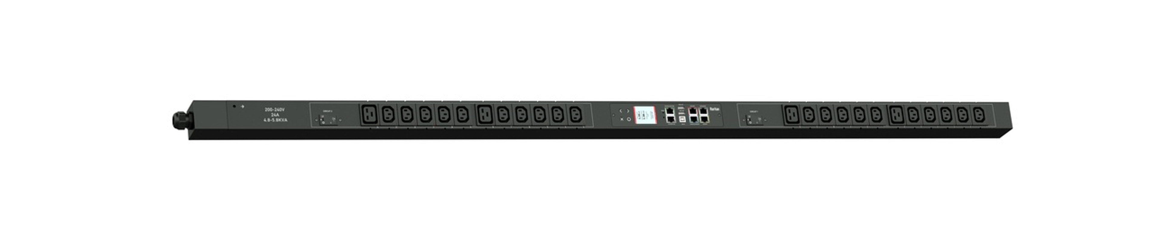 Switched POPS/PIPS Expansion PRO2, Per Outlet and Per Input Power Sensing, 0U, (24) IEC C13 and (6) C19, (1) LED Amp Meter in the Middle, 100-120V, 30A with NEMA L5-30P plug, Pivot Entry, (2) Temp/Humidity Sensor Capable, Circuit Breakers