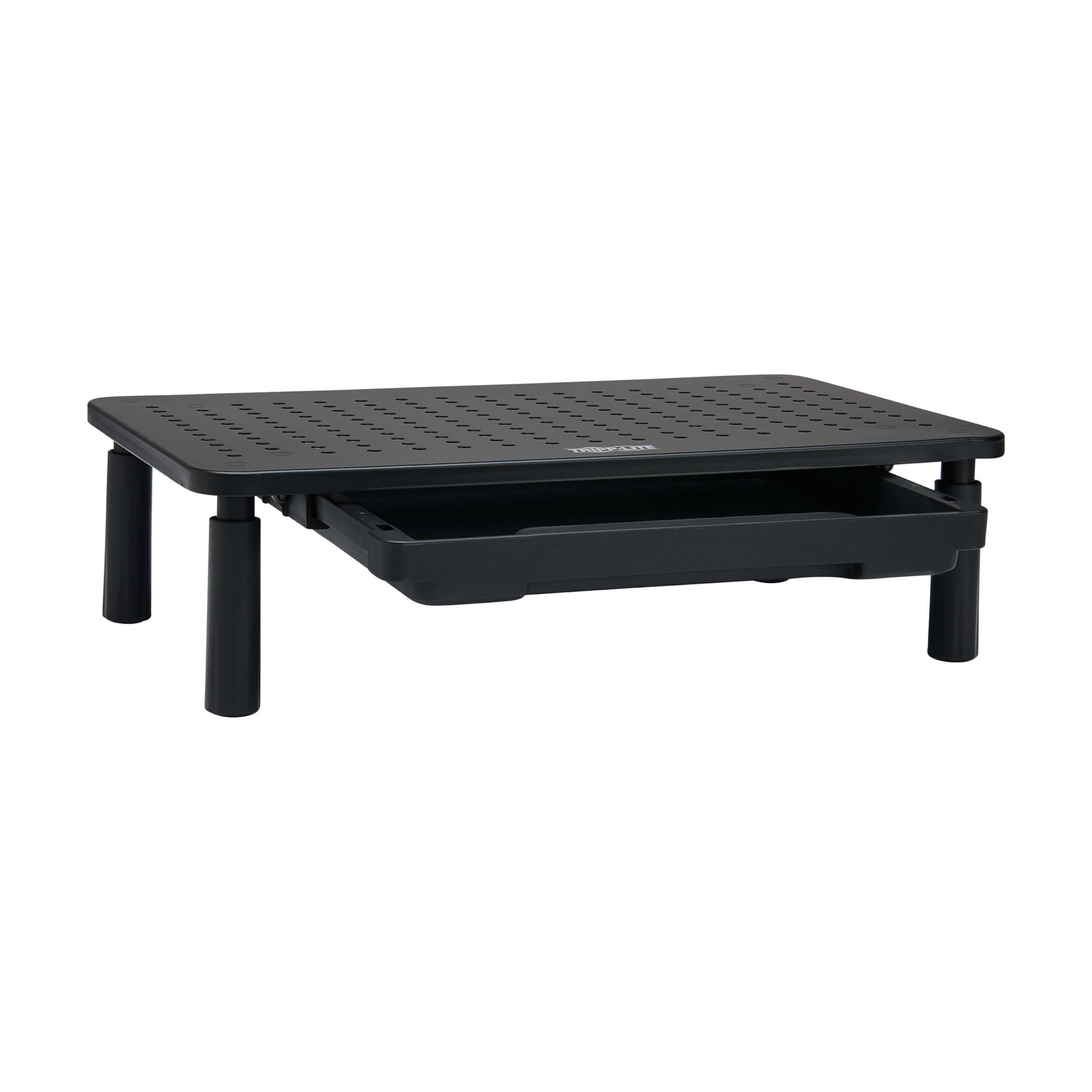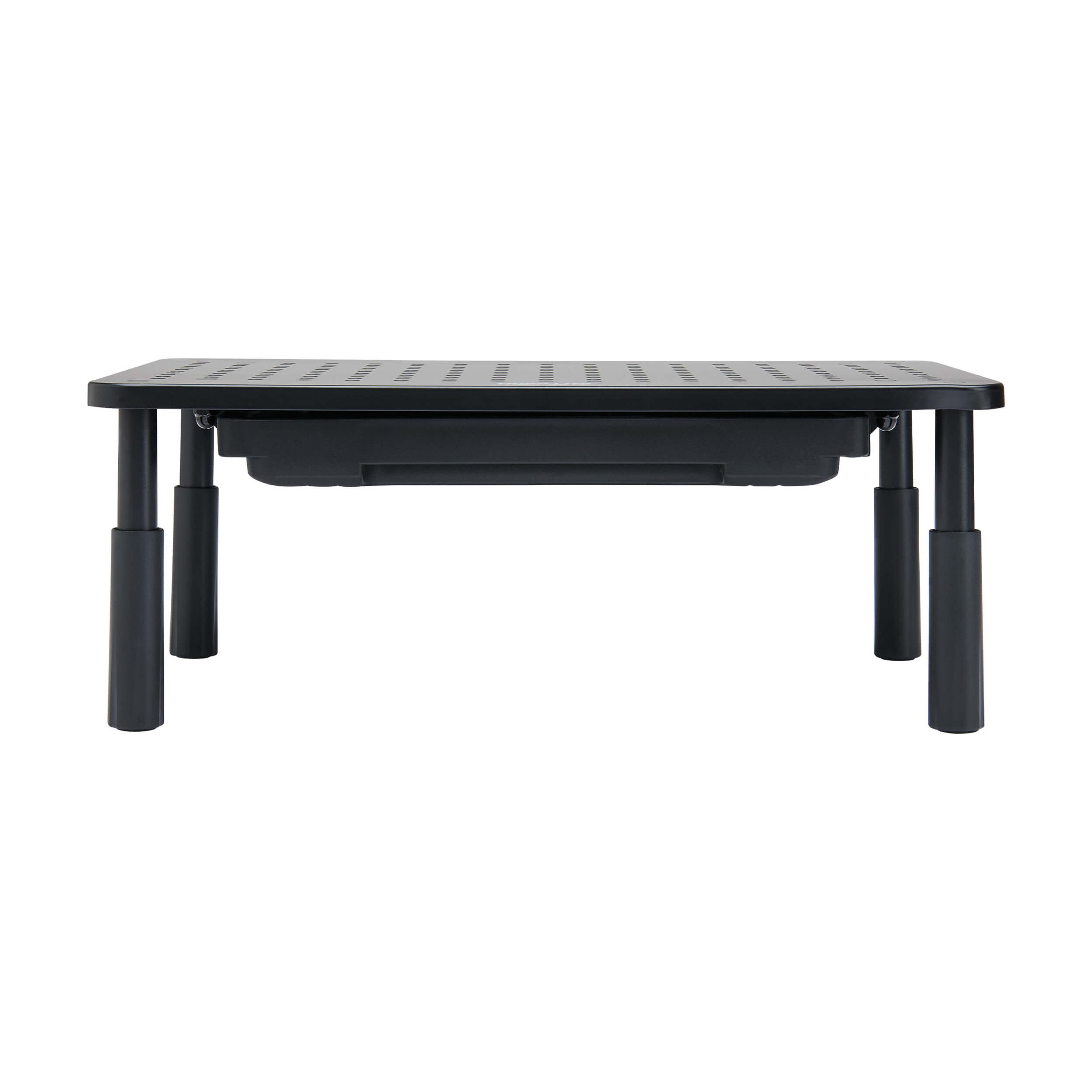 Constructed from rugged metal, this monitor riser supports devices weighing up to 44 pounds, including monitors, laptops, printers, and small televisions. The ventilated platform measures 14.6 x 9.3 inches, ensuring proper airflow to keep your equipment cool. Plus, a built-in storage drawer provides convenient access to office supplies, helping you maintain a tidy workspace.
