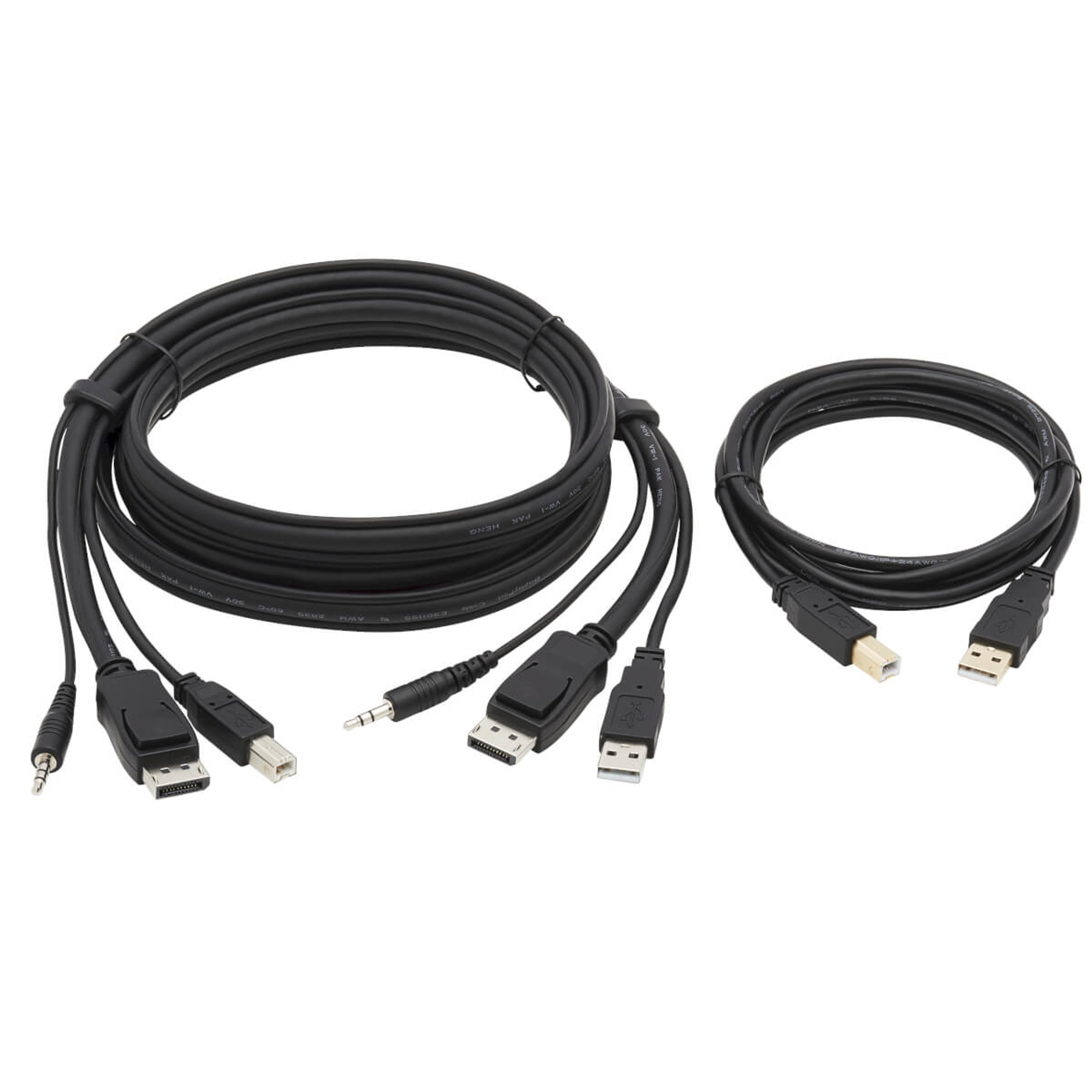 Connect Your DisplayPort Computer to a NIAP KVM Switch with CACThis DisplayPort cable kit includes two 6-ft. (1.83 m) cables designed for seamless connectivity between your computer and a KVM switch equipped with a Common Access Card (CAC) port. The P783-006 features DisplayPort, USB A/B, and 3.5 mm audio connectors on both ends, ensuring a comprehensive connection to your KVM switch. Additionally, the included U022-006 USB cable connects to the KVM's CAC port, allowing access to smart cards, scanners, and biometric readers, including fingerprint readers, enhancing your security measures.