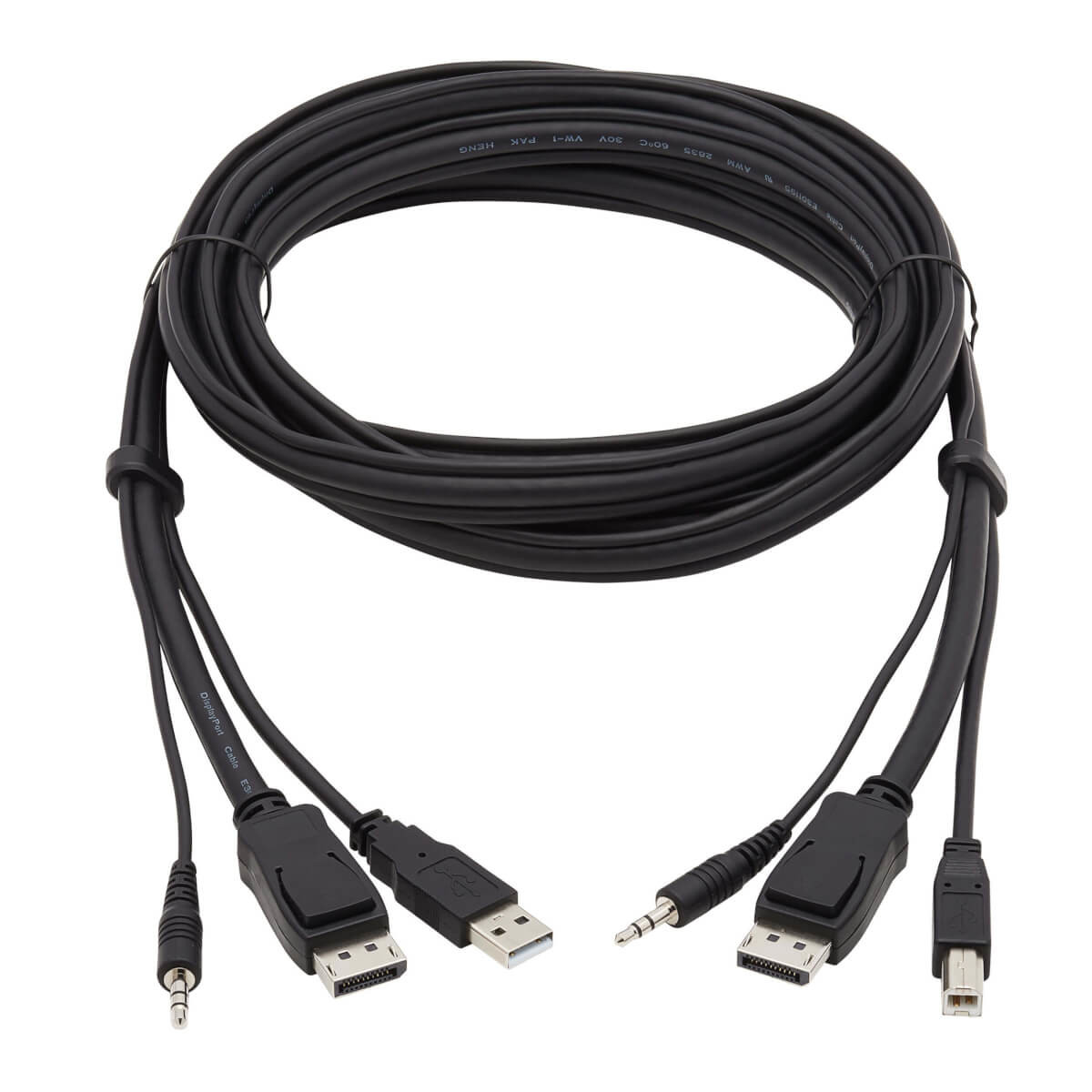 This 10-ft. (3.05 m) 3-in-1 cable is designed to simplify your workspace by combining DisplayPort, USB A/B, and 3.5 mm audio connectors into one convenient cord. It supports stunning DisplayPort video resolutions up to 3840 x 2160 (4K x 2K) at 60 Hz with true 4:4:4 chroma subsampling, ensuring vibrant and accurate colors. Compatible with HDCP 2.2, DisplayPort 1.2, and USB 2.0 (480 Mbps) standards, this cable offers reliable performance for both video and data transfer. Enjoy plug-and-play operation with no software required for easy installation, cutting down on cable clutter and saving you money.
