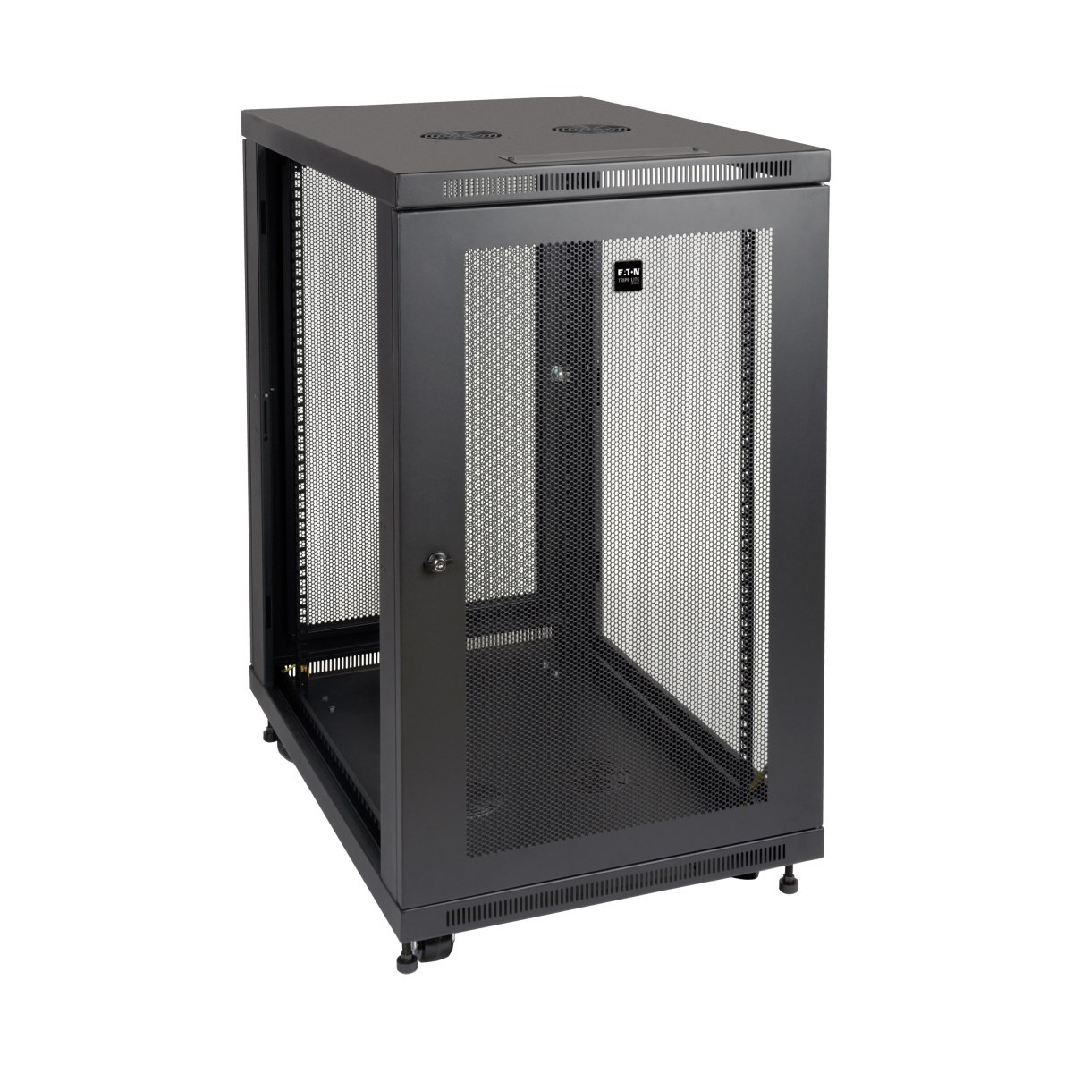 The Tripp Lite SR24UB rack enclosure is expertly designed for server rooms, IT closets, micro data centers, and edge computing applications. Constructed from heavy-duty steel with a durable black powder-coated finish, this cabinet supports a maximum load capacity of 1,000 pounds (453 kilograms).