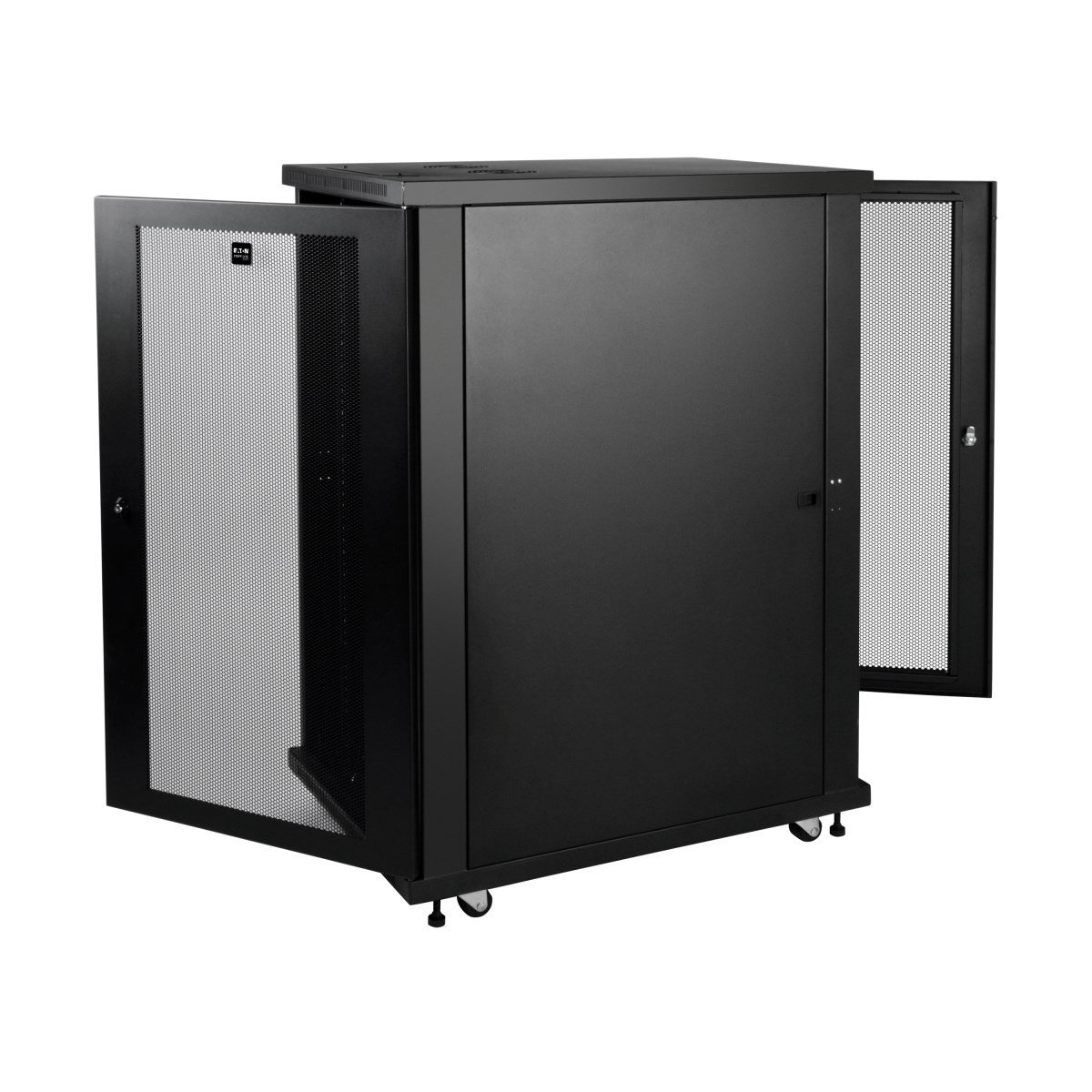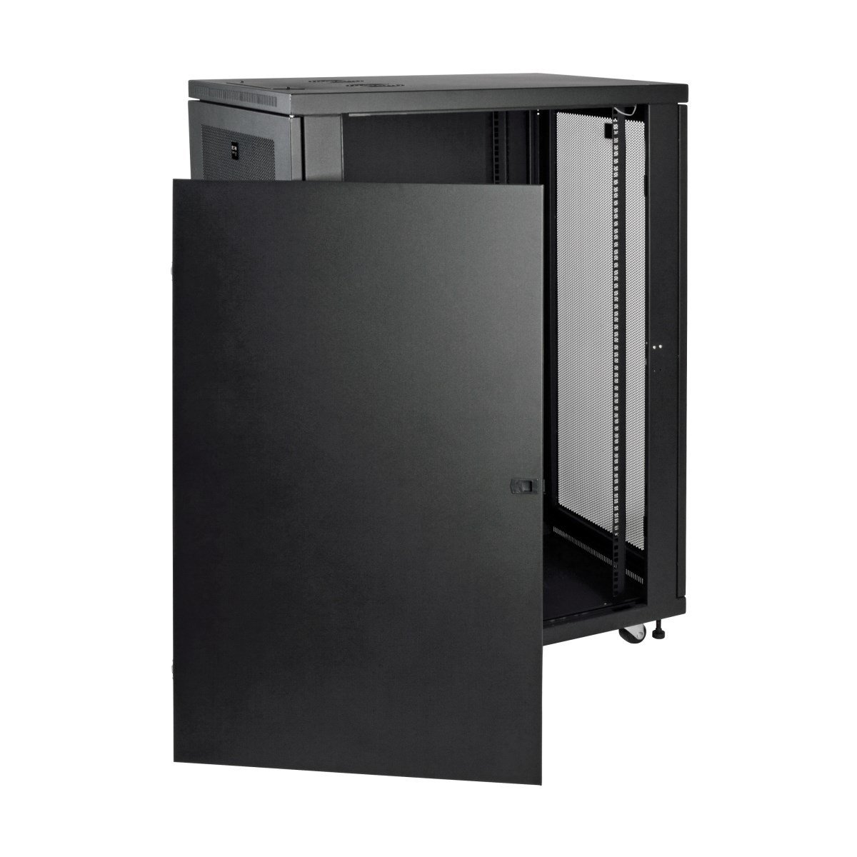 The Tripp Lite SR24UB rack enclosure is expertly designed for server rooms, IT closets, micro data centers, and edge computing applications. Constructed from heavy-duty steel with a durable black powder-coated finish, this cabinet supports a maximum load capacity of 1,000 pounds (453 kilograms).