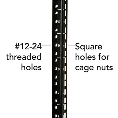 The SRW10US comes fully assembled and ready to mount to the wall, or you can opt for the SRCASTER rolling caster kit (sold separately) to make it a mobile rack. With square and 12-24 threaded mounting holes and numbered rack spaces, equipment installation is a breeze. The vertical mounting rails adjust in 7/8-inch increments to accommodate equipment up to 20.5 inches deep, such as network switches and patch panels.