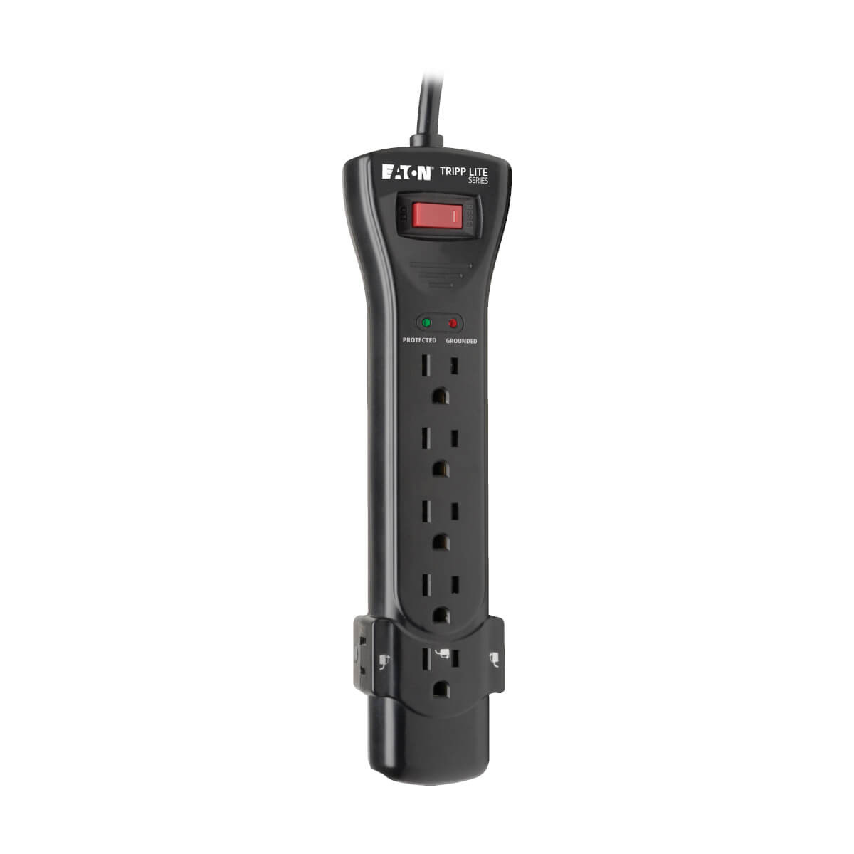 The Tripp Lite SUPER7B Surge Suppressor is designed to protect your valuable electronics from power surges and spikes. With 7 AC outlets and a 7-ft. cord featuring a space-saving right-angle plug, this surge protector is perfect for home or office use. It boasts a robust surge suppression rating of 2160 joules, ensuring your devices are safeguarded against even the strongest surges.