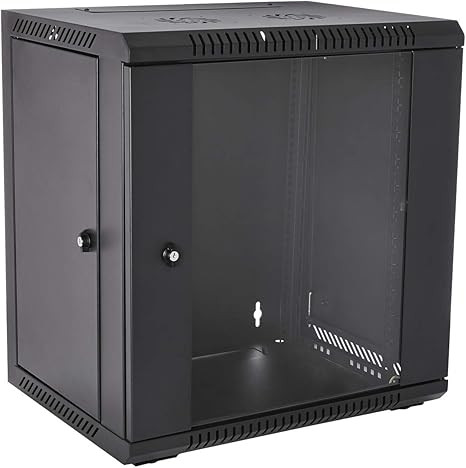 Rack Wall Mount Glass Door Enclosure - For LAN Switch, Patch Panel - 12U Rack Height15.35" Rack Depth - Wall Mountable, Floor Standing - Black - Glass