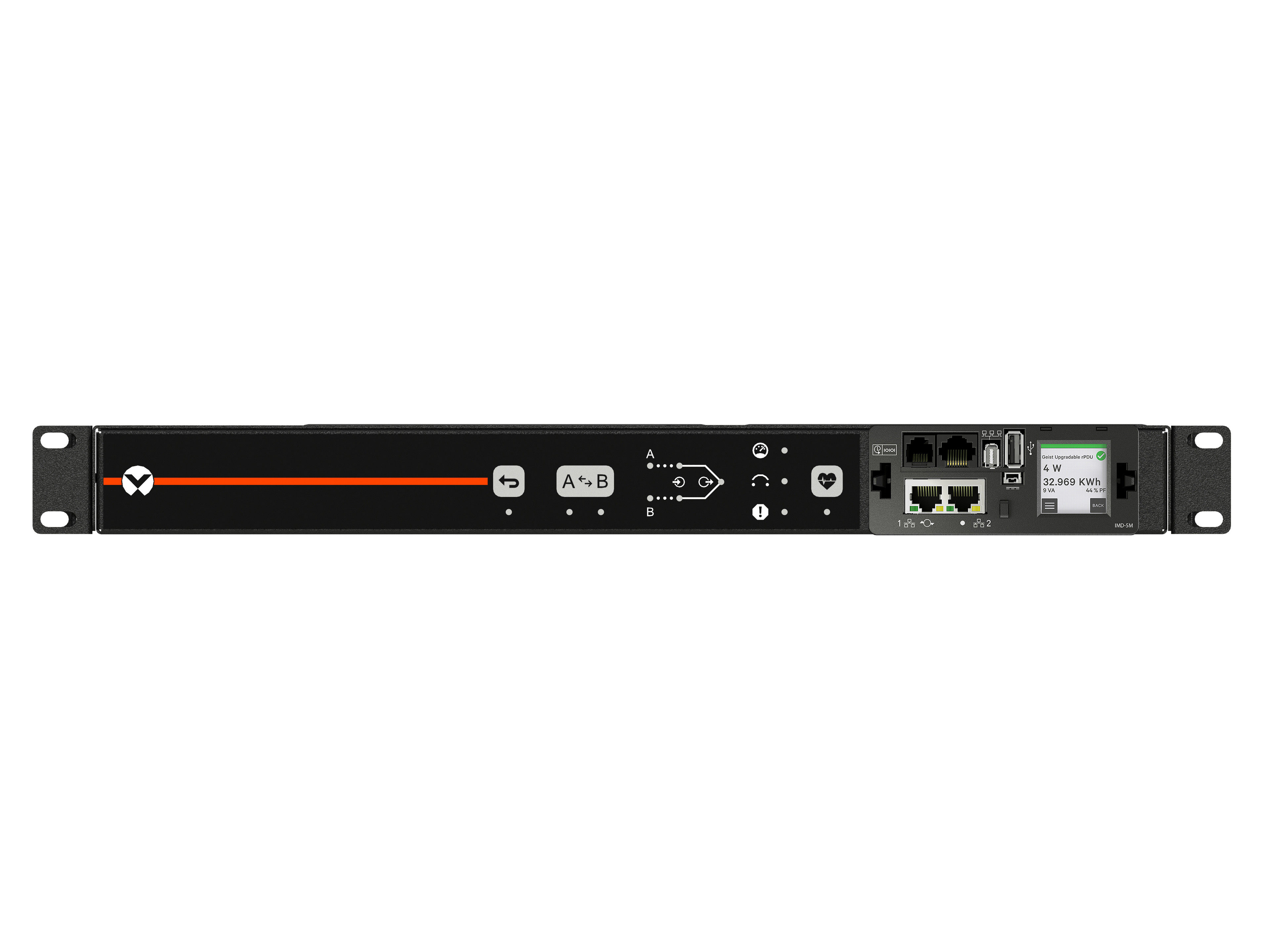 - An integrated Vertiv Geist Next-Generation IMD with a 128x128 high-visibility LCD for real-time power monitoring.