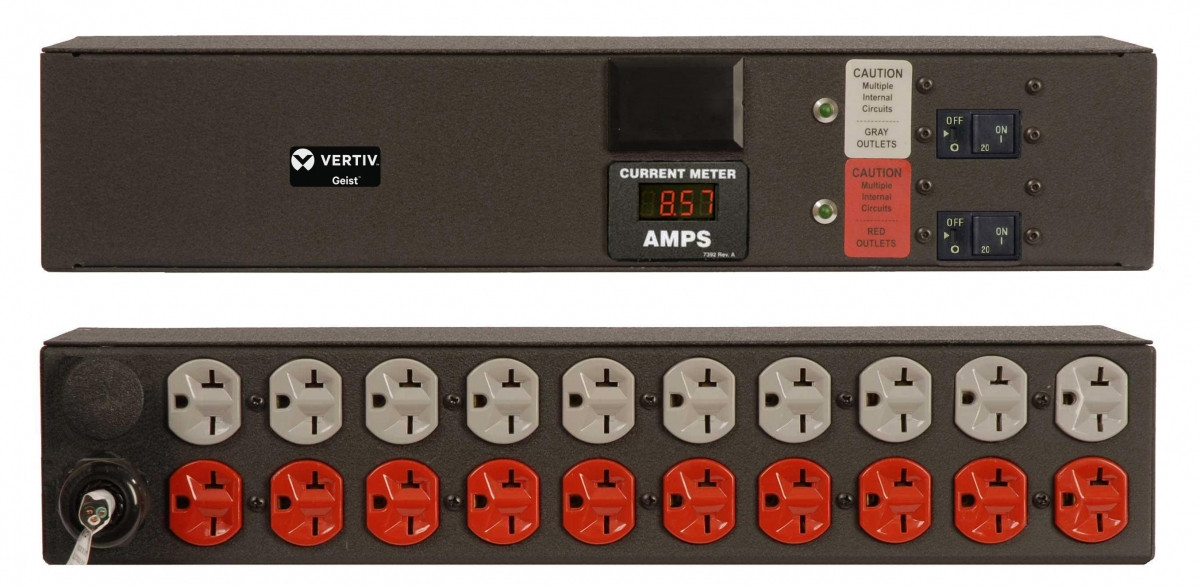 The Vertiv Geist XPBA240-103D20TL6 is a metered rack PDU designed to deliver reliable power to critical IT equipment within a rack or cabinet. This unit features a local LED display that provides real-time power data, ensuring you have instant access to power consumption metrics. This is essential for avoiding accidental overloads when deploying or moving critical server equipment.