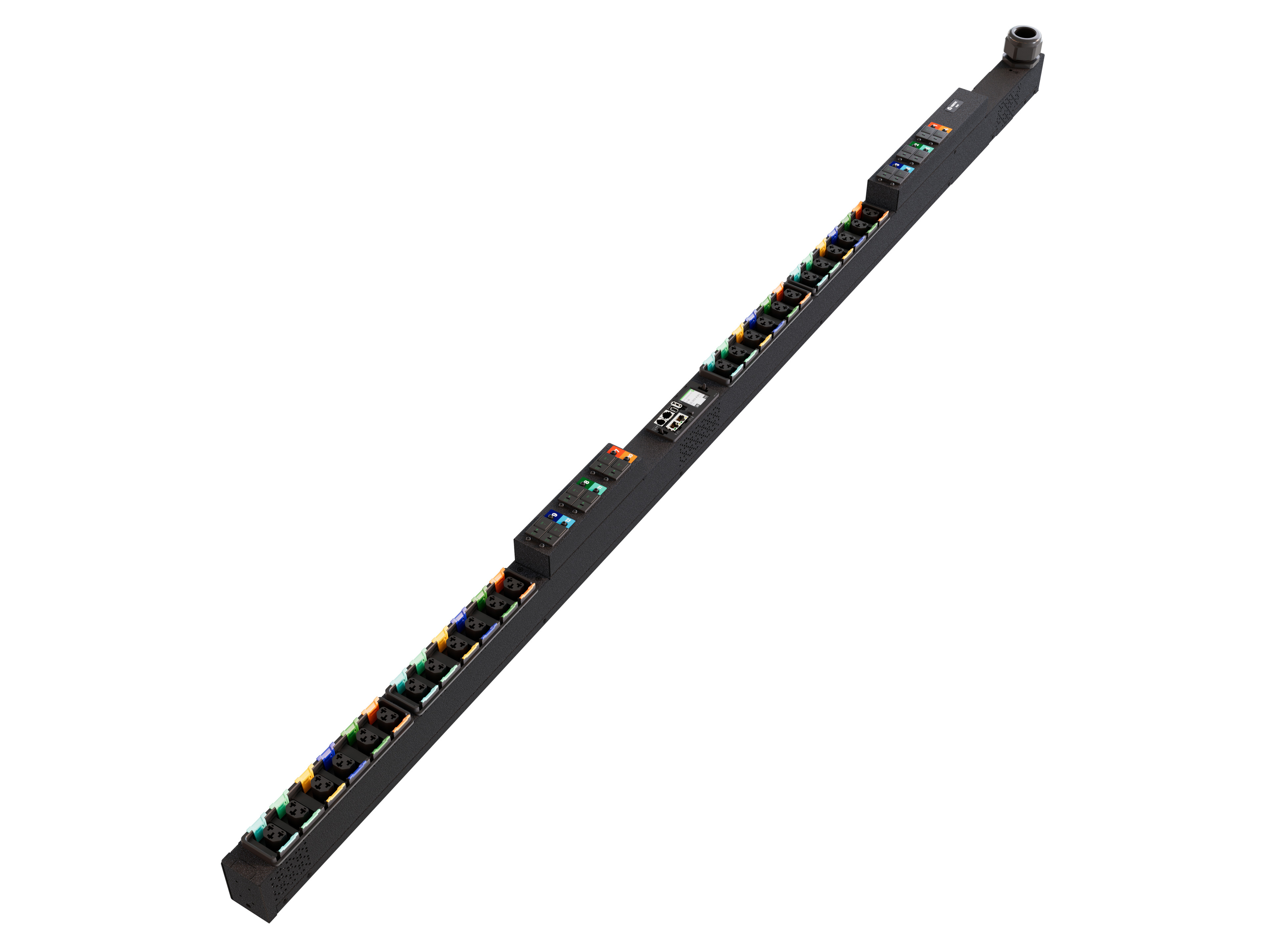 The Vertiv PowerIT Switched Unit Level Monitored High Density Rack Power Distribution Unit (rPDU) VP5U60A3 is designed for high-performance environments, offering a robust solution for power distribution. This 0U vertical rPDU features: