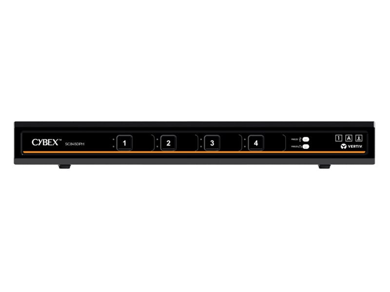 The Vertiv™ Cybex™ Secure MultiViewer KVM Switch is designed to provide seamless access to both classified and non-classified data through a versatile and secure interface. Featuring a universal video port connector, it supports DisplayPort (DP), HDMI, and DVI-D video connections without the need for adapters, making it highly adaptable to various setups.