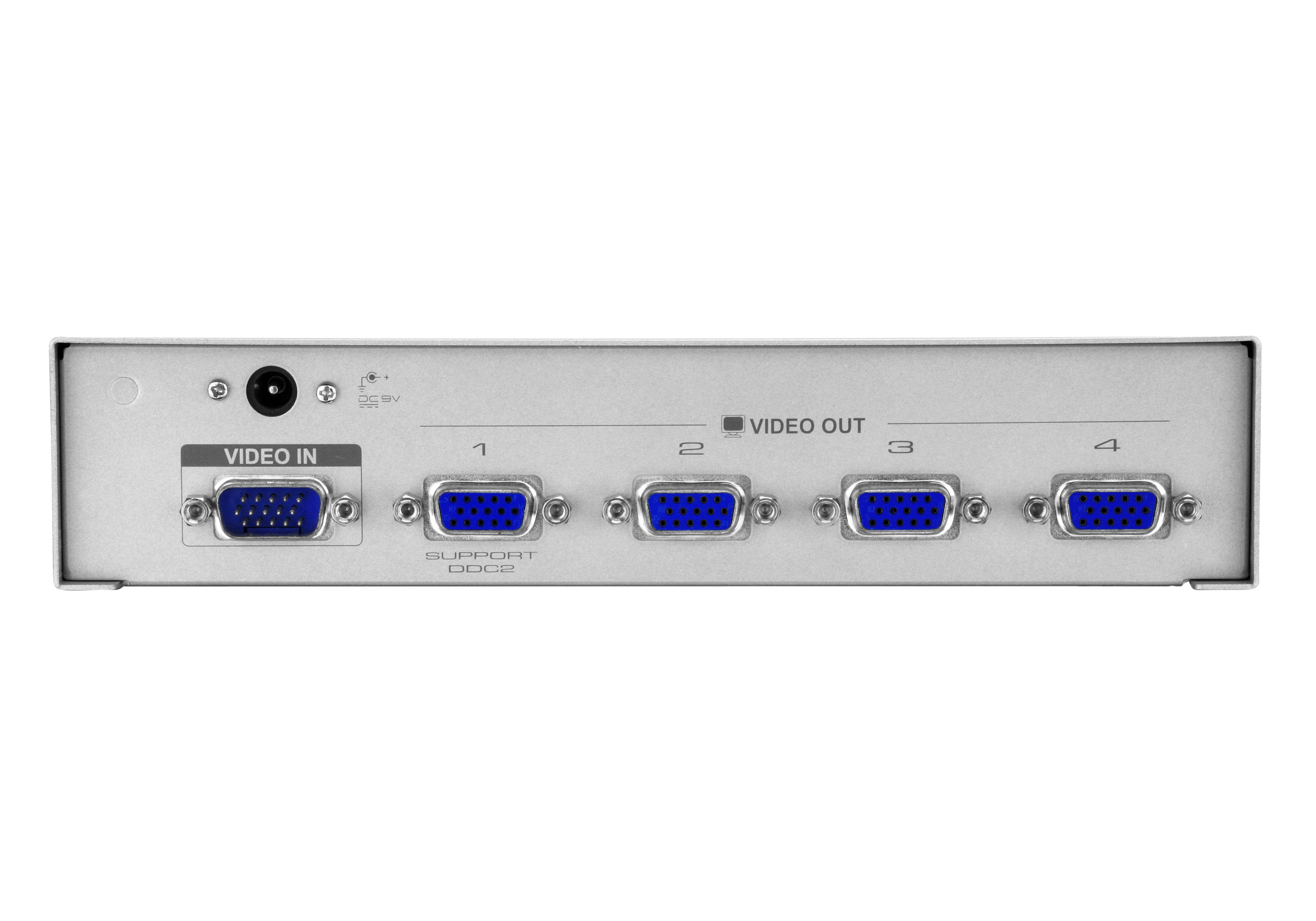 The ATEN VS94A Video Splitter is designed to duplicate and boost video signals from a single input to four outputs, making it an ideal solution for public broadcasting and multi-monitor setups. With a remarkable bandwidth of up to 350 MHz, it ensures high-quality video transmission over long distances, reaching up to 210 feet. This versatile splitter supports various video resolutions, including 1920 x 1440, and is compatible with a wide range of monitors, including VGA, XGA, SVGA, UXGA, and multisync monitors.