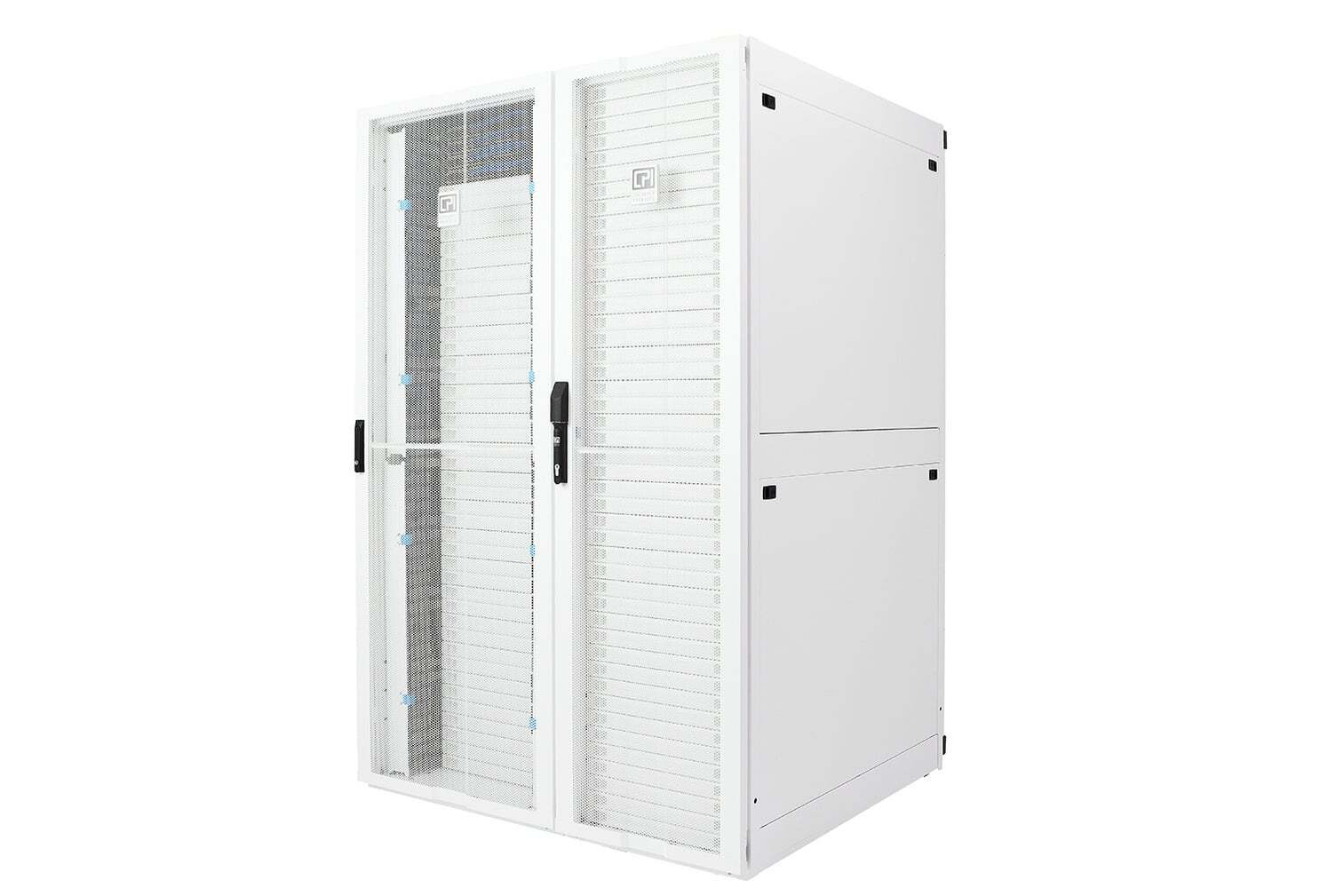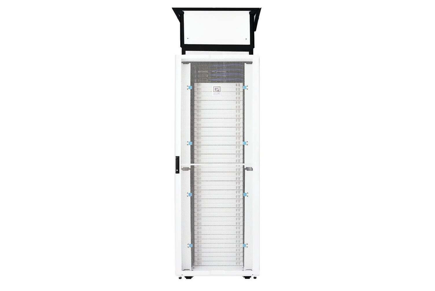 ZetaFrame® Cabinet; 89.9"H x 31.5"W x 47.2"D (2283 mm x 800 mm x 1200 mm); 48U; Perf Front Door; Double Perf Rear Door; Brush Top Panel; 2 Side Panels; Grommet Bottom Panel; Air Dam; Rail Brushes; Standard Pallet; Glacier White