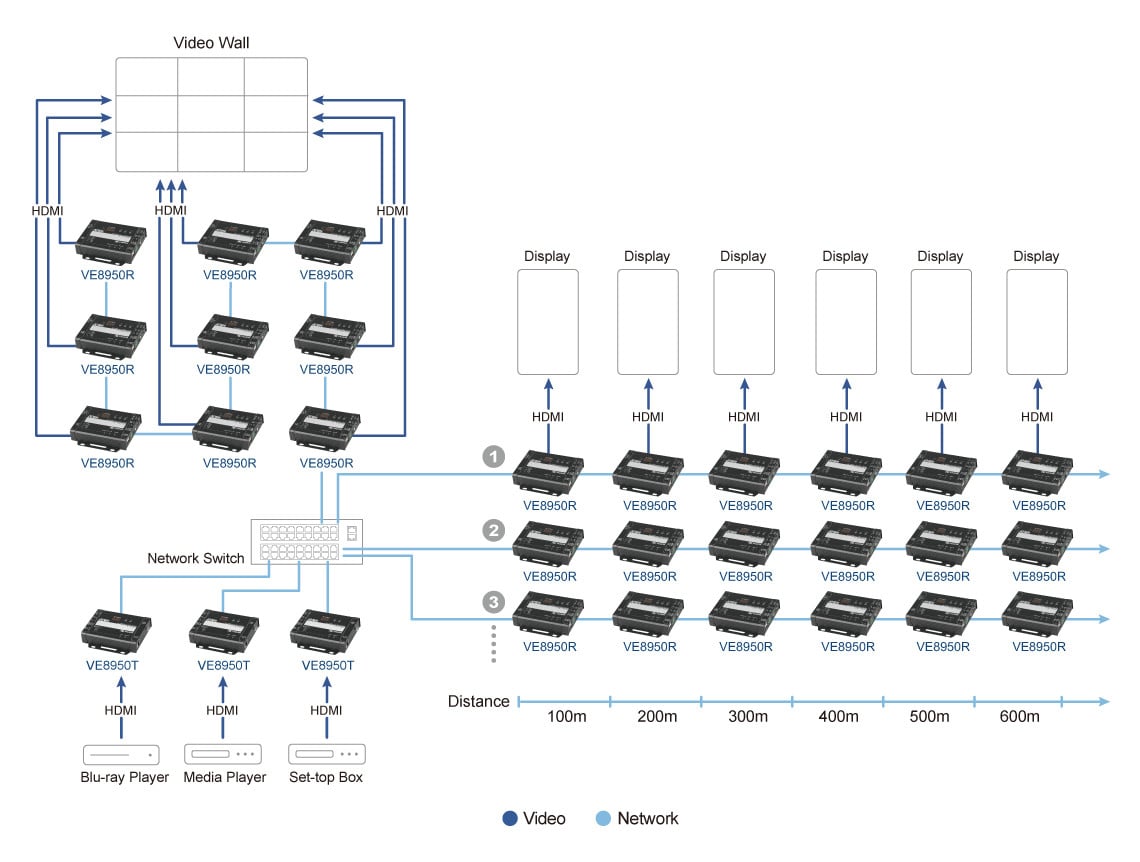 The ATEN VE8950T Video over IP Transmitter is engineered to deliver visually lossless 4K AV signals with ultra-low latency over long distances using a standard Gigabit network switch. This device is perfect for a variety of environments, including trade shows, airports, university campuses, conference centers, and shopping centers.